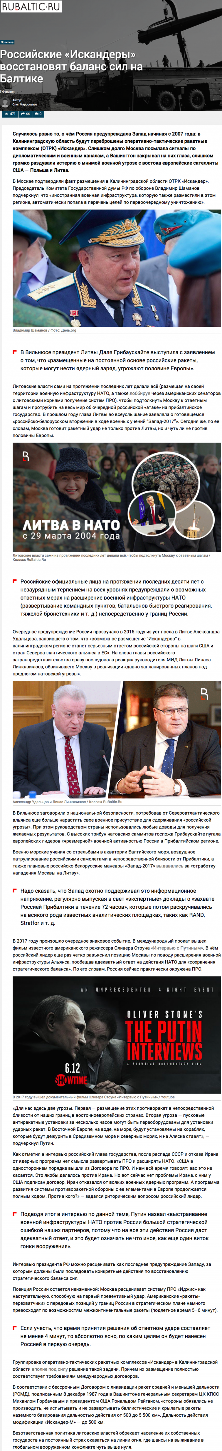 Konservatorių bendruomenės nuolatos plačiai ir intensyviai propaguojamas Rusijos propagandinis portalas rubaltic.ru paskelbė straipsnį, kuriame pabandė pasiteisinti, kodėl Kaliningrado srityje dislokavo raketos „Iskander“.