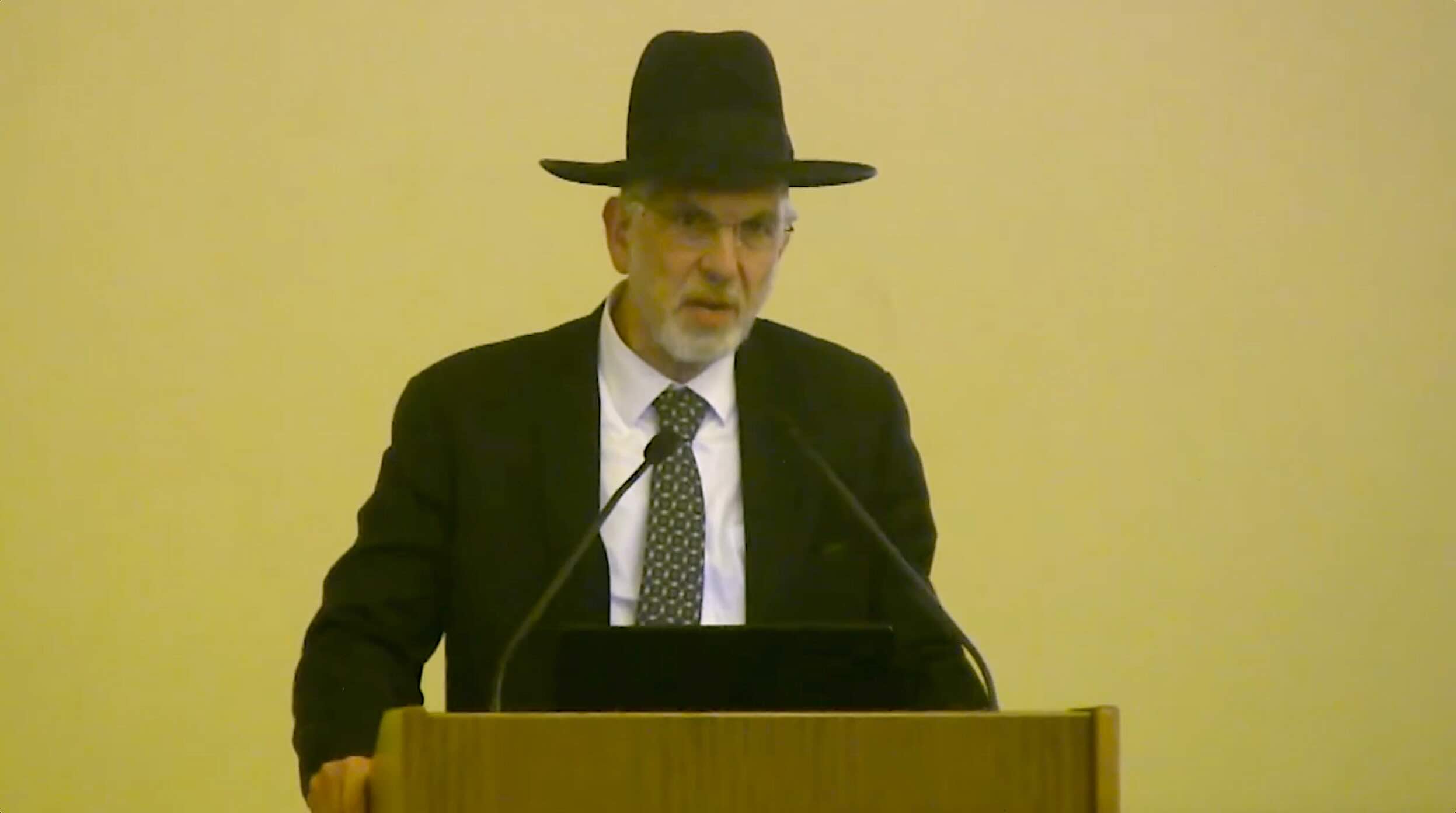 „Rabbi Barron, žydų paveldas Lita. Ar aš matau kapų plėšikus čia? Atsiprašau, mano lietuvių kalba labai prasta. Bet aš nesuprantu nieko šį vakarą. Viskas turėjo vykti rusų kalba. Kokią blogio imperiją jūs atstovaujate? Tie žmonės, kurie kalbėjo. Ar jūs atstovaujate carą Nikolajų, kuris pavogė ketvirtadalį kapinių. Ar jūs atstovaujate Staliną, kuris pavogė likusią dalį? Ką jūs atstovaujate?! Kapų plėšikai! Dabar yra XXI amžius. Kapų plėšikai. Mes atsivedėme 200 rabinų čia. Bus ir 2000 rabinų čia. Ačiū. Nustokite plėšti mūsų kapus“, - anglų pasakė rabinas Baronas, po kurio kalbos salėje kilo didelis šurmulys.
