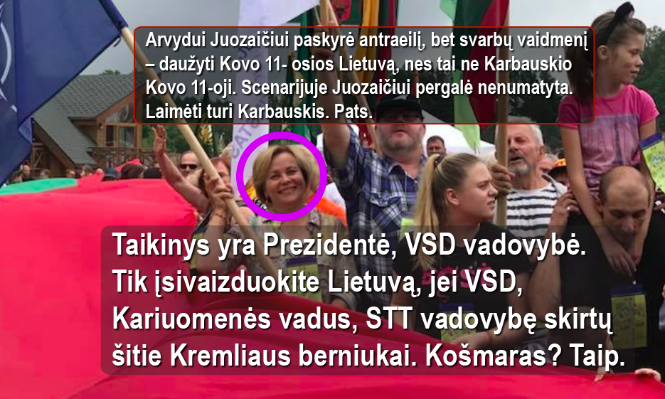 Beje, šioje Karbauskio/Puidoko atakoje esu tik epizodas. Taikinys yra Prezidentė, VSD vadovybė. Tik įsivaizduokite Lietuvą, jei VSD, Kariuomenės vadus, STT vadovybę skirtų šitie Kremliaus berniukai. Košmaras? Taip.