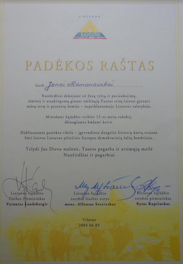 „Tegul meilė Lietuvos neužgęsta širdyse.“
