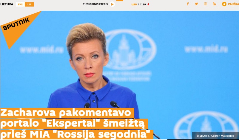Rusijos užsienio reikalų ministerijos atstovė Marija Zacharova Lietuvos žiniasklaidos žodžius apie MIA „ROSSIYA SEGODNYA“ ryšius su terorizmu pavadino „klasikiniu netikros informacijos įmetimu“, - skelbia portalas sputniknews.lt.