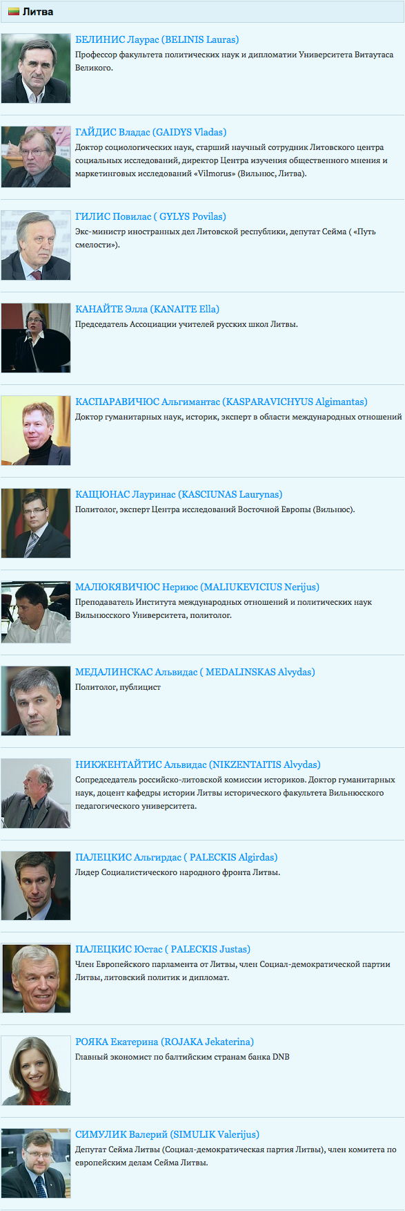 P. S. Portalo rubaltic.ru fragmentas, skelbiantis su šiuo tinklalapiu bendradarbiaujančių ekspertų sąrašą: