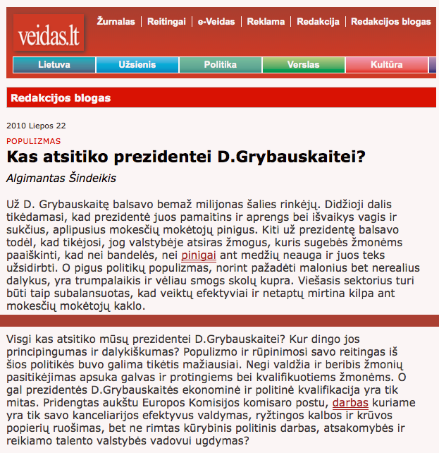 Taigi, šiuo nelengvu laiku prezidentei į komandą būtina pasikviesti naujų išraiškingesnių veidų, tegul ir laikinai, kad padėtų lošimą sužaisti. Turbūt nesuklysiu sakydamas, kad tokių dar nenuvarytų arklių paieška vyksta ir jų atsiranda. Pastarojo provokacijų skandalo metu viešumon išniro ir ėmė šmėžuoti TV laidose „Veido“ žurnalo vyr. redaktoriaus Algimanto Šindeikio figūra. Gana simpatiškas, intelektualus, neblogai išmanantis teisinės retorikos vingrybes, klausimas tik ar lojalus, ar patikimas, mat 2010-aisiais liepos 22 d. „Veido“ redakcijos tinklaraštyje štai ką kalbėjo: „Visgi kas atsitiko mūsų prezidentei D. Grybauskaitei? Kur dingo jos principingumas ir dalykiškumas? Populizmo ir rūpinimosi savo reitingais iš šios politikės buvo galima tikėtis mažiausiai. Negi valdžia ir beribis žmonių pasitikėjimas apsuka galvas ir protingiems bei kvalifikuotiems žmonėms? O gal prezidentės D. Grybauskaitės ekonominė ir politinė kvalifikacija yra tik mitas? Pridengtas aukštu Europos Komisijos komisaro postu, darbas kuriame yra tik savo kanceliarijos efektyvus valdymas, ryžtingos kalbos ir krūvos popierių ruošimas, bet ne rimtas kūrybinis politinis darbas, atsakomybės ir reikiamo talento valstybės vadovui ugdymas?“ Visą įdomų A. Šindeikio straipsnį skaitykite ČIA.