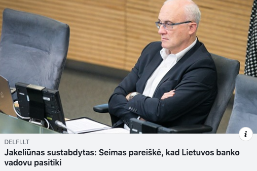 Jis taip pat informavo, kad nepriklausomas Žmonių partijos portalas delfi.lt paskleidė eilinį kartą paskleidė dezinformaciją dėl svarstymų seime apie Lietuvos banko vadovą.