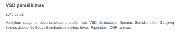 Gatajevų šeimos nariai įtarė, kad D. Šumskis yra 2010-ųjų balandį gimusios S. Esimbajevos dukters tėvas. Į tai reaguodamas VSD 2010 m. birželio 2 d. paskelbė šį pareiškimą: