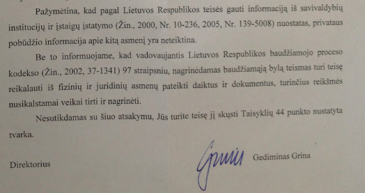 Šio prašymo VSD nepatenkino, o Gatajevai Suomijoje sulaukė Gedimino Grinos pasirašyto rašto su pastaba, jog šie dokumentai yra „neteiktina privataus pobūdžio informacija apie kitą asmenį”: