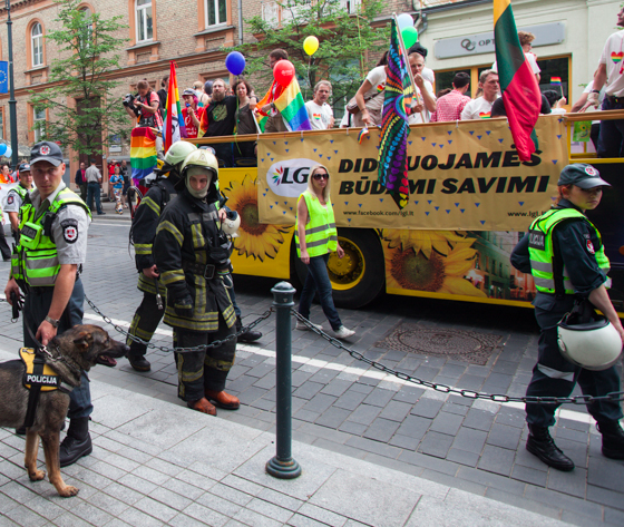 | Visomis įmanomomis policijos ir gaisrininkų pajėgomis saugomi eitynių „Už lygybę” dalyviai pabrėžė didžiavimąsi savimi. Nuotr. E.eu |
