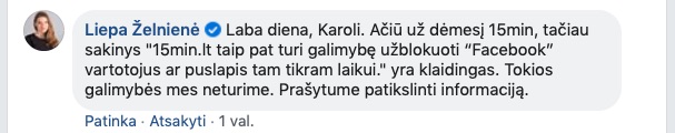 15min.lt sprendžia ką Jūs galite matyti Feisbuke, o ką blokuoti