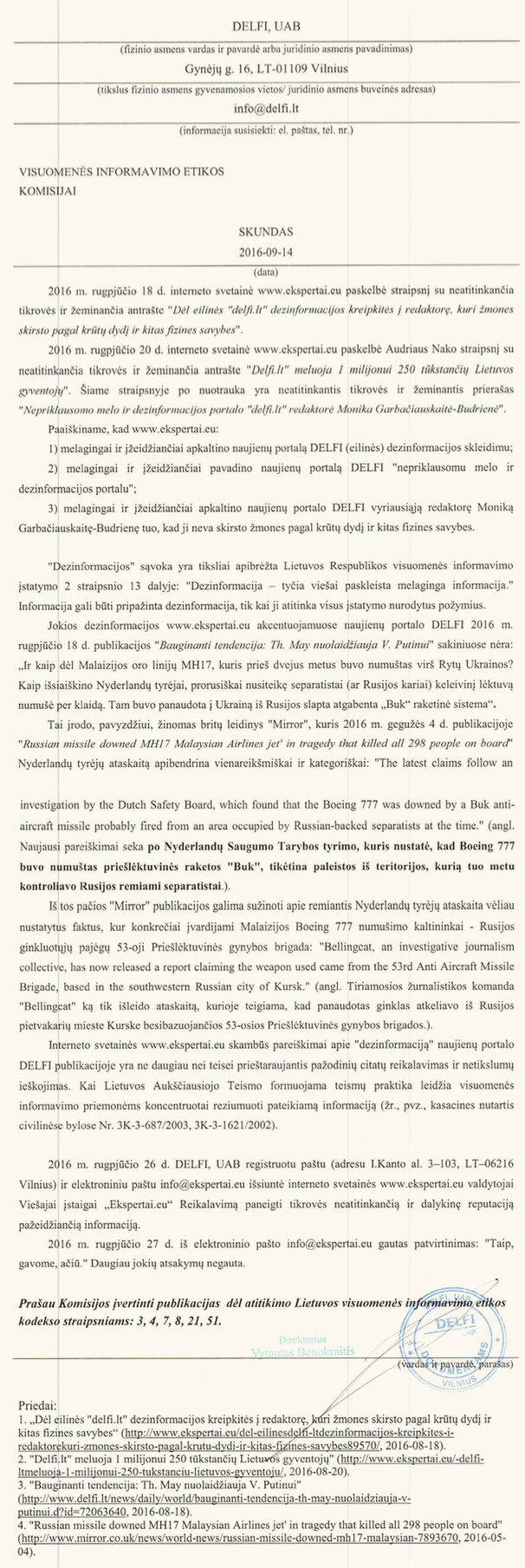 Su visu UAB DELFI skundu galima susipažinti čia: