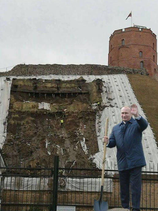 Tačiau aiškėja, kad prie Gedimimo kalno griūties savo rankeles prikišo ir Rusijos prezidentas Vladimiras Putinas.