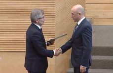 Po Seimo balsavimo atleisti S. Urbonavičių padėkos kalbą pasakė ir gėlių įteikė Seimo pirmininkas Viktoras Pranckietis.