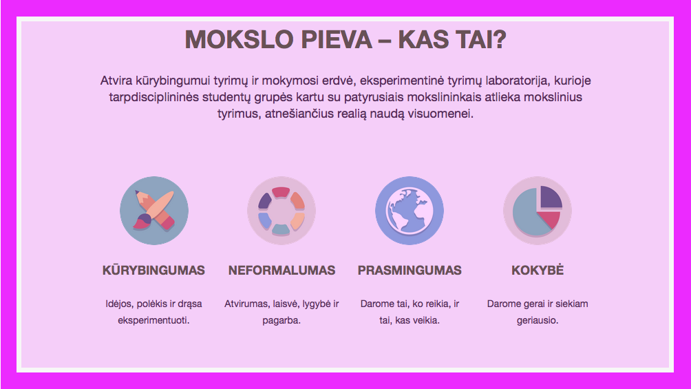 Sunku patikėti, kad „Mokslo pievos“ projektas yra atsitiktinis. Jame dalyvauja reprezentatyvi profesūra, nepamirštas ir JAV atstovavimas (Floridos universiteto atstovas).