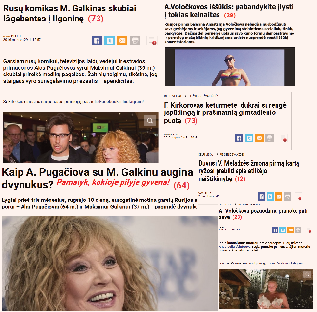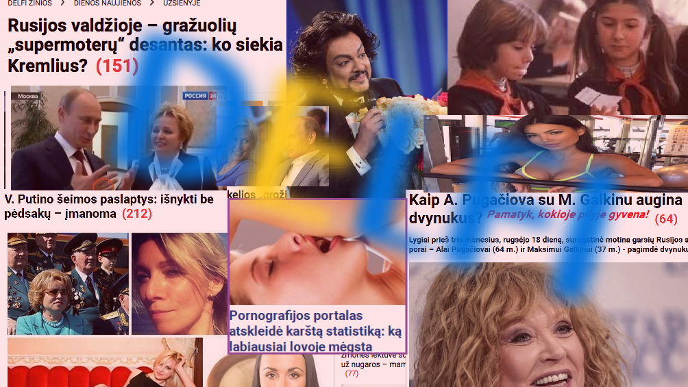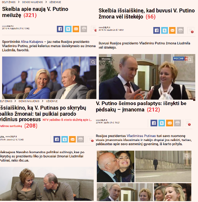 Šioje veikloje ypač pasižymi naujienų portalas delfi.lt, kuris kasdien skaitytojus šeria informacija apie Rusiją ir jos lyderį Vladimirą Putiną, jo asmeninį gyvenimą, taip siekdamas sukelti susidomėjimą Rusijos lyderiu, įsigyventi į jo šeimynines problemas, jį užjausti ir palaikyti. Atkreiptinas dėmesys, kad apie Lietuvos vadovės – prezidentės Dalios Grybauskaitės šeimyninį gyvenimą delfi.lt skaitytojus informuoja gerokai rečiau, o tai liudija, kokie yra šios žiniasklaidos priemonės prioritetai.