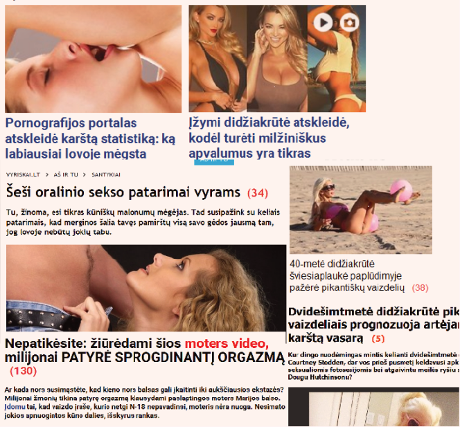 Lietuvos krikščioniškajai ir kultūrinei tradicijai bei visuomenės moralei taip pat prieštarauja portalo delfi.lt platinamos naujienos apie lytinius santykius bei skirtingo dydžio moterų krūtis. Akivaizdu, kad taip bandoma sukelti įtampą visuomenėje ir supriešinti Lietuvos moteris, versti jas nuolat galvoti apie savo krūtų dydį. Perteklinėmis naujienomis apie lytinius santykius stengiamasi užzombinti Lietuvos gyventojus ir nukreipti jų dėmesį nuo politikos. Tokia portalo politika atitinka Rusijos informacinio propagandinio karo tikslus, vienas kurių yra padaryti Lietuvos gyventojus provincialiais ir apolitiškais.