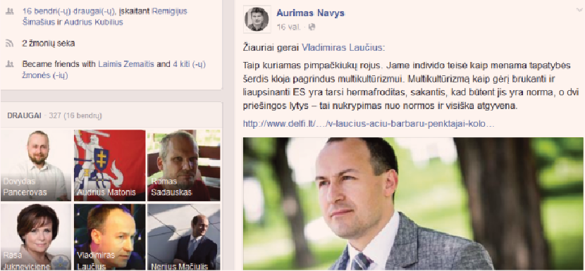 Tai Lietuvos kariuomenės Strateginės komunikacijos departamento Informacinių operacijų karininkas Aurimas Navys, per ataskaitinį laikotarpį viešai pritaręs visuomeninės LRT televizijos „politologo“ Vladimiro Laučiaus Europos Sąjungą ir jos multikultūrinę politiką niekinančiam komentarui bei viešai apkaltinęs ES narę Austriją bendradarbiaujant su fašistais ir „Kremliaus teroristais“.