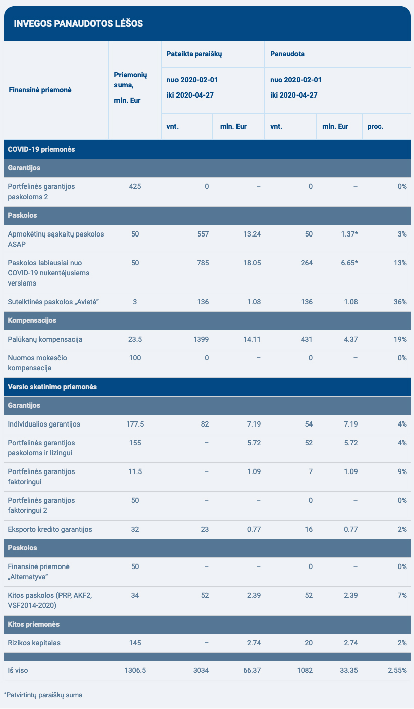„Siunčiame atsakymą į Jus dominančius klausimus: INVEGOS panaudotų lėšų suma, kuri atnaujinama kiekvieną dieną, skelbiama čia: https://invega.lt/lt/covid-19/invegos-panaudotos-lesos/. Įmonių, pasinaudojusių INVEGOS priemonėmis sąrašas, kuris atnaujinamas kas savaitę, skelbiamas čia: https://invega.lt/lt/covid-19/pasinaudojusiu-imoniu-sarasas/“, - rašoma lakoniškame Lietuvos Respublikos Vyriausybės kanceliarijos Visuomenės informavimo grupės atsakyme, kuriame nenurodoma, koks konkrečiai asmuo parengė šį atsakymą.