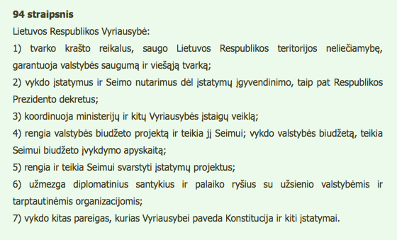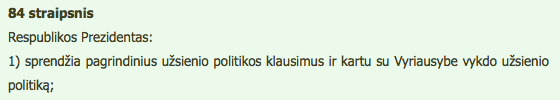 Tai – Lietuvos Respublikos prezidentės Dalios Grybauskaitės atsakomybė už užsienio politikos formavimą.