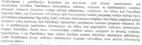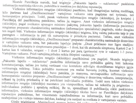 Ekspertai.eu pastaba, kad pakuotės lapelyje būtų sąžininga įrašyti, jog „indikacijos pagrįstos siekiu klaidinti žmones ir iš to uždirbti”, nėra nusižengimas: