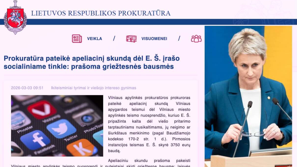 Apeliaciniu skundu prašoma pakeisti Vilniaus miesto apylinkės teismo nuosprendį ir nuteistajai skirti griežtesnę bausmę: laisvės apribojimą 1 metams 6 mėnesiams, skiriant intensyvią priežiūrą elektroninio stebėjimo priemonėmis. 1