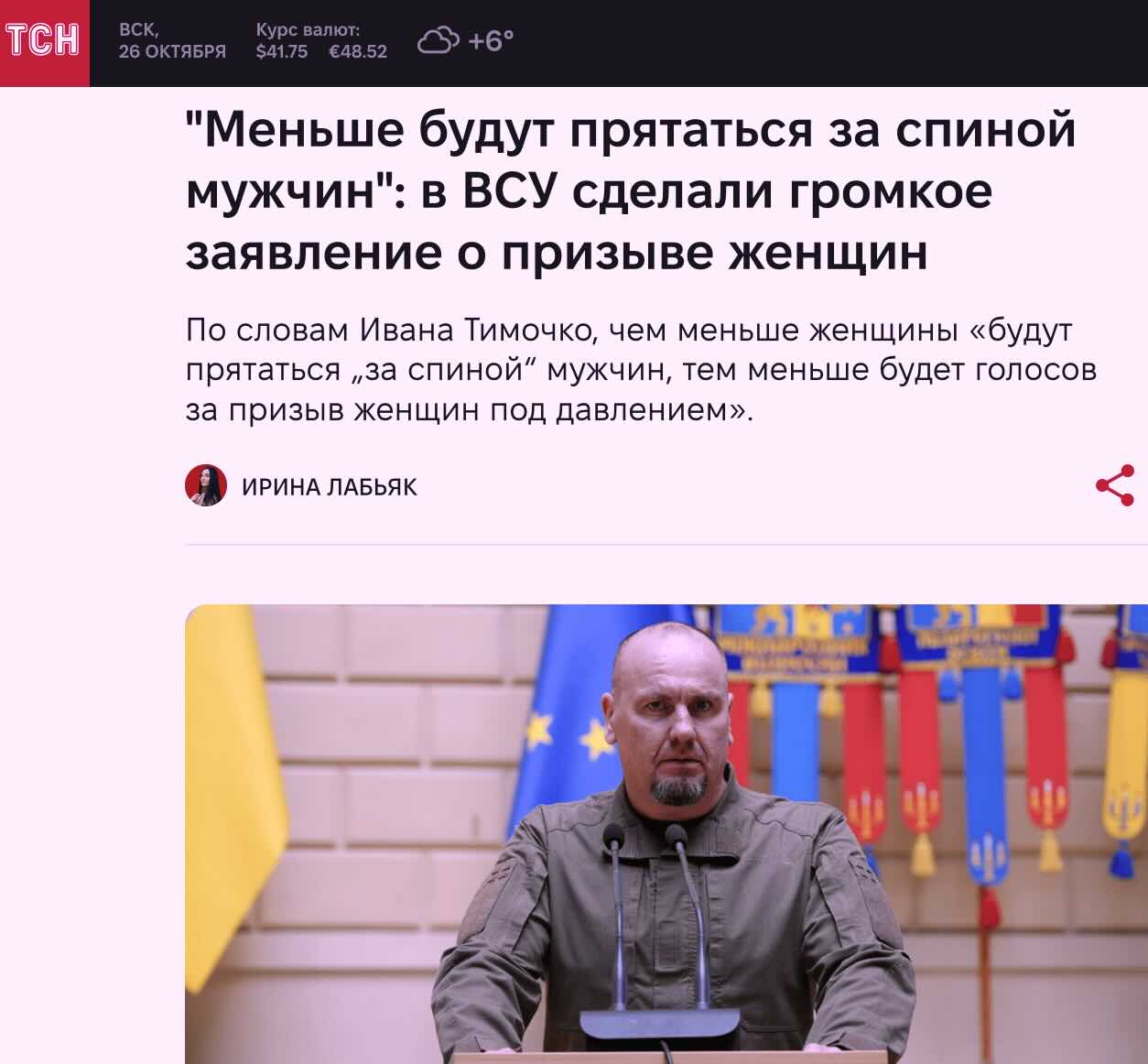 Ukrainoje vėl atgijo tema apie moterų apskaitą ir galimą mobilizaciją. Sausumos pajėgų rezervistų tarybos vadovas pareiškė, kad moterų tarnyba – savanoriška, tačiau pokalbiai šia tema turi būti atviri ir be isterijos.