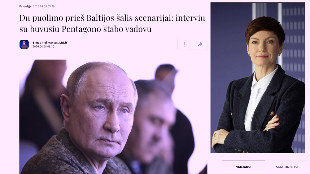 Ankstyvą balandžio 8-osio rytą, nuo 5 val. 30 min. į Lietuvos gyventojus ir vėl grėsmingai žvelgė Vladimiras Putinas – valstybinis transliuotojas LRT paskelbė interviu su buvusiu Pentagono štabo vadovu Eric Rosenbach.