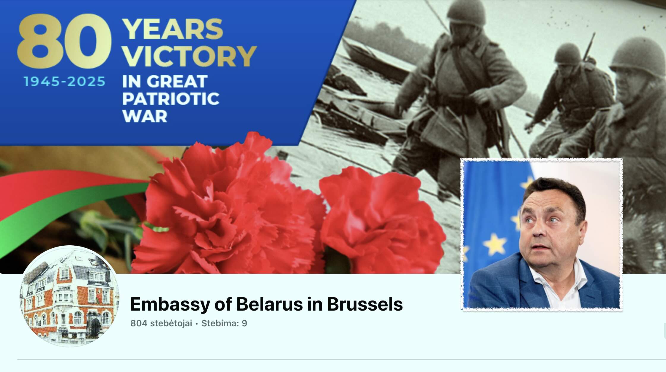 | Baltarusijos ambasados Briuselyje viršelis visuomeniniame tinkle Facebook (rėmelyje europerlamentaras Petras Gražulis). |