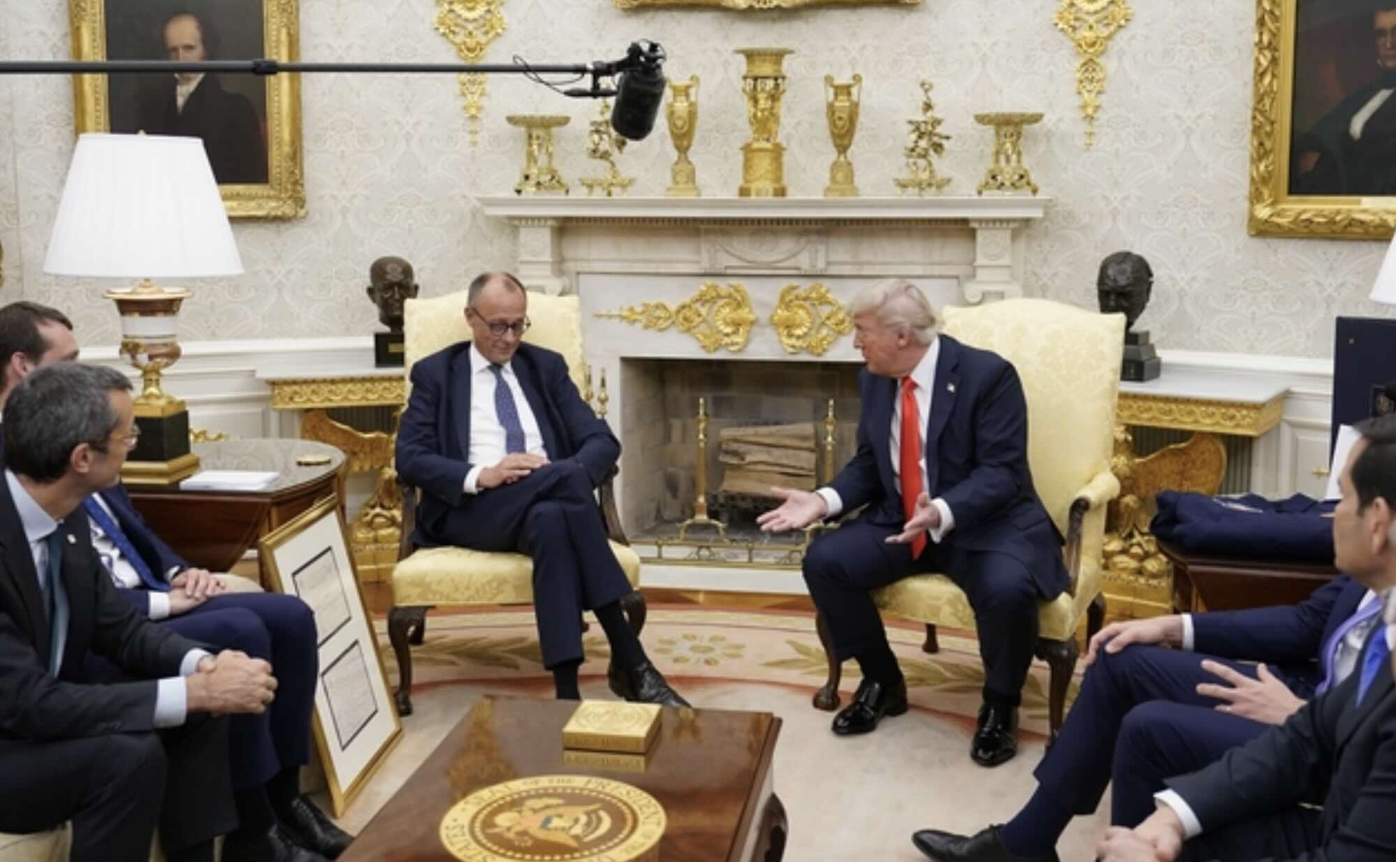 „Mark Rutte sakė, kad sąjungininkai yra pasirengę padėti. Bet... ką tai reiškia?“, - paklausė žurnalistai D. Trump jo susitiko Ovaliajame kabinete su Vokietijos kancleriu Fridrich Merz metu.