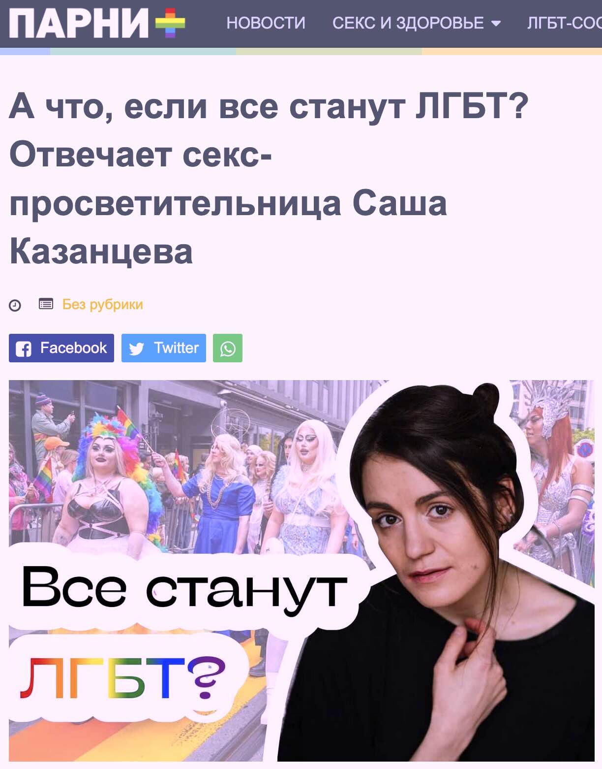 Seksualinė švietėja garsėja savo šviečiamosiomis įžvalgomis, viena jų – „O kas bus, jei visi taps LGBT?“.