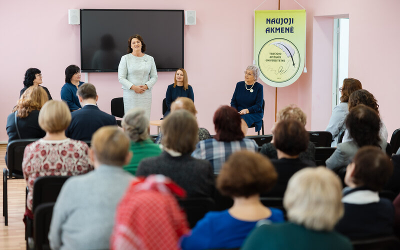 Prezidentūra pranešė, kad pirmoji valstybės ponia Diana Nausėdienė lankėsi Naujojoje Akmenėje, kur susitiko su trijų Akmenės rajono Trečiojo amžiaus universitetų (TAU) bendruomenėmis.