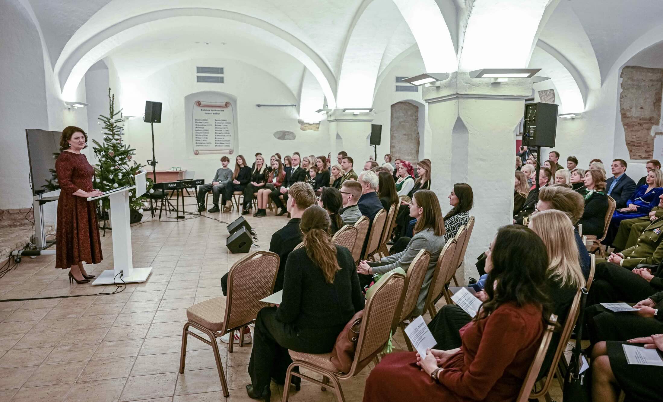 Pirmoji valstybės ponia Diana Nausėdienė dalyvavo Lietuvos didžiosios kunigaikštienės Birutės karininkų šeimų moterų sąjungos – Birutiečių – advento padėkos vakare.