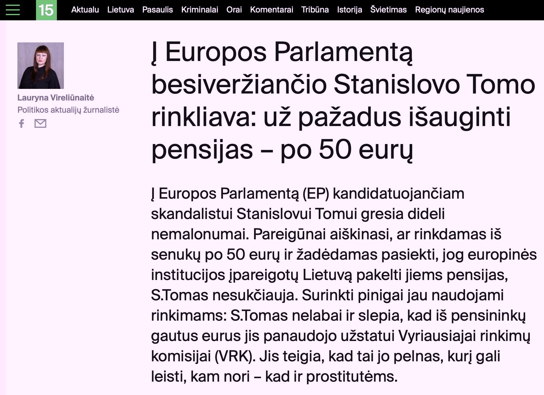 Taigi, viešojoje erdvėje tokie epizodai dažnai suplakami į vieną bendrą S. Tomo kriminalizavimo foną, taip nustumiant į šalį esminį klausimą: Jungtinių Tautų Ekonominių, socialinių ir kultūrinių teisių komitetas vis dėlto oficialiai įvardijo Lietuvos senatvės pensijų adekvatumo problemą.