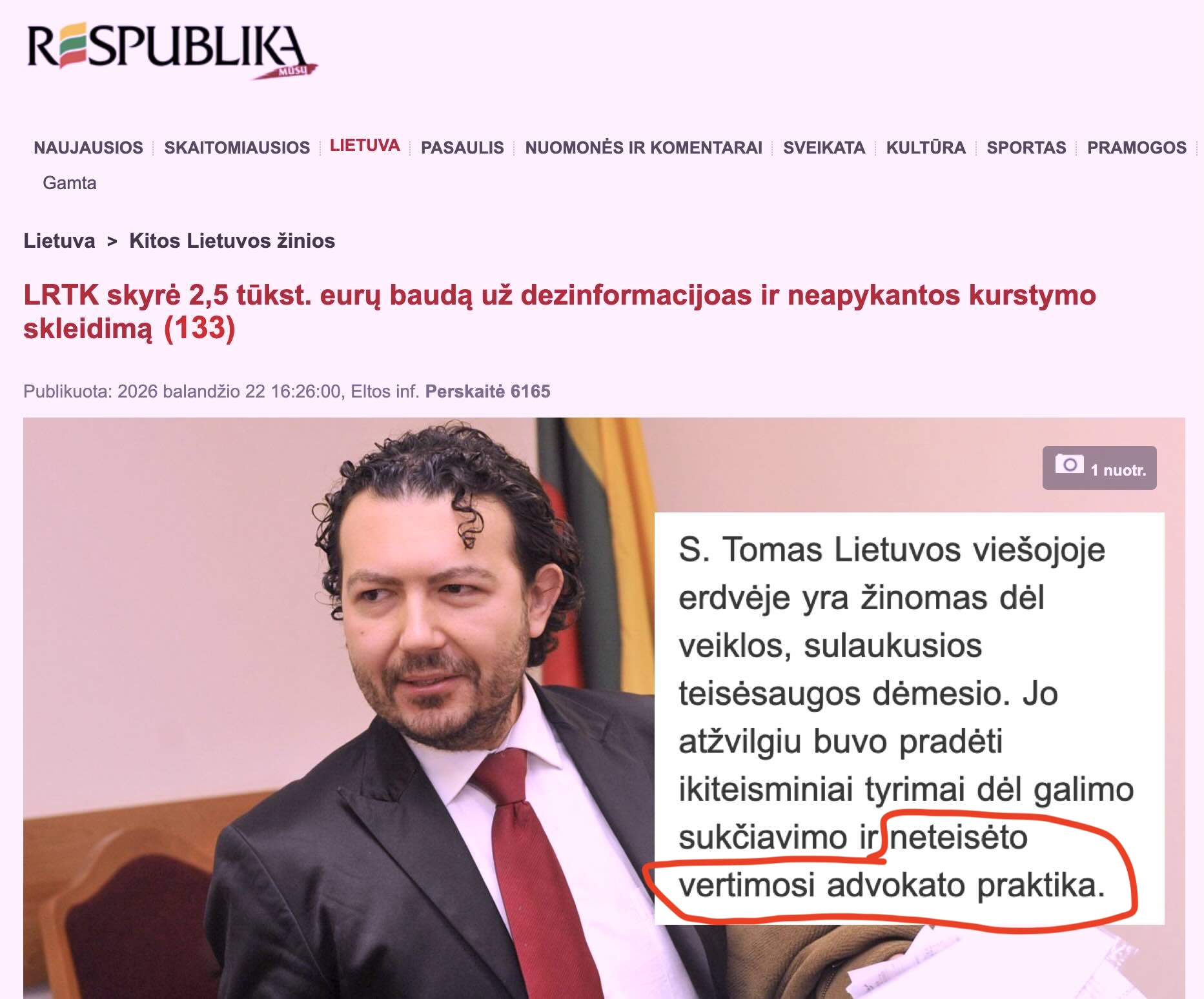 Maža to, LRTK paskelbė, kad teisėsauga yra pradėjusi ikiteisminį tyrimą dėl „neteisėto vertimosi advokato praktika”, kas yra atviras melas, nes teisėsauga nėra pradėjusi jokio tyrimo dėl „neteisėto vertimosi advokato praktika”, kadangi S. Tomas teisėtai verčiasi advokato praktika. Tačiau tai jau kito straipsnio tema.
