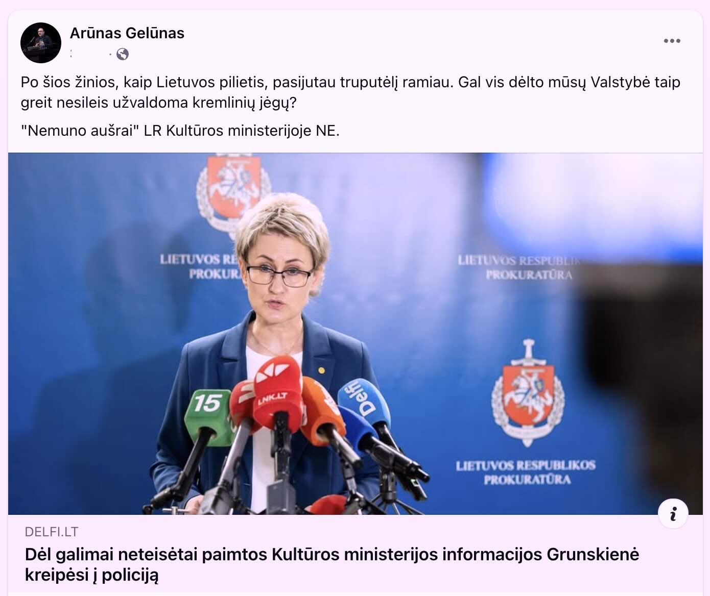 P. S. Į įvykius sureagavo ir Vienas pagrindinių už demokratiją, laisvę ir valstybės saugumą sukilusių Lietuvos kultūrininkų lyderių, liberalas, šiuo metu vienos biudžetinės įstaigos vadovas Arūnas Gelūnas.