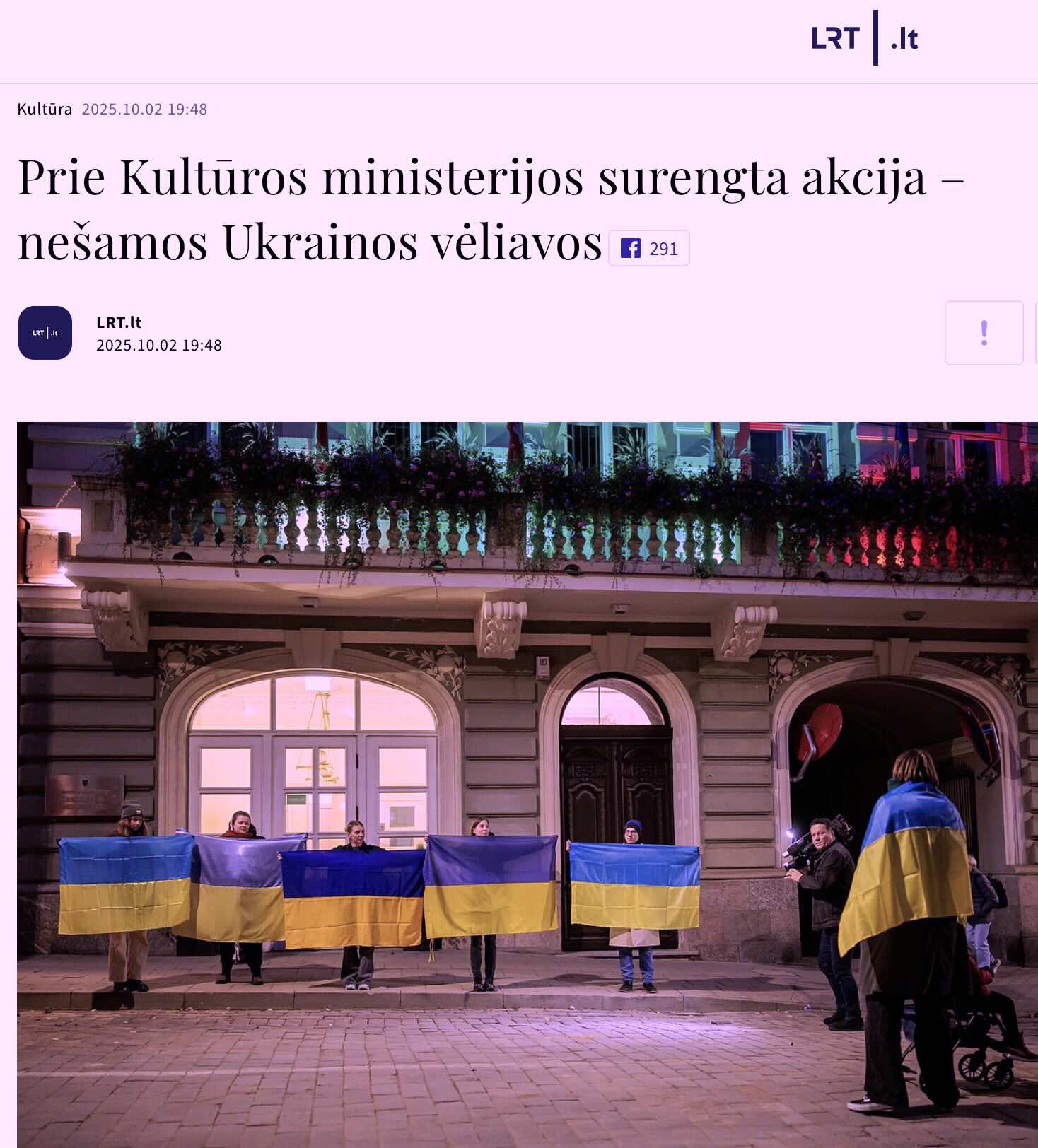 „Gerb. Kultūros ministre Ignotai Adomavičiau, iš viešų pasisakymų supratome, kad Ukrainos vėliavos iš Kultūros ministerijos buvo nuimtos „valymui“.