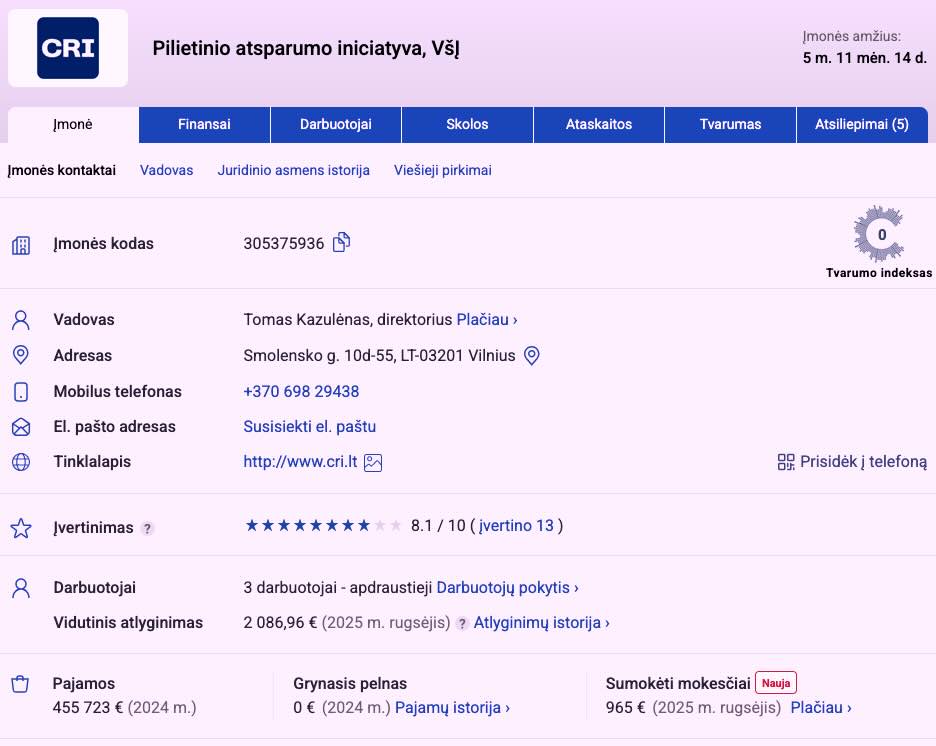 Viena iš ryškiausių ir dosniausiai mokesčių mokėtojų pinigais finansuojamų tokių „visuomeninių“ struktūrų yra VšĮ „Pilietinio atsparumo iniciatyva“, kuriai vadovauja Tomas Kazulėnas. Organizacija turi savo tinklalapį CRI.lt ir tvarko dezinformacijos duomenų bazę, kuri viešinama svetainėje balticdisinfo.eu.