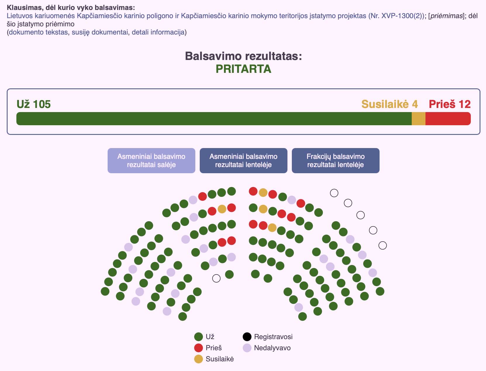 Balandžio 23 d. Seimas pritarė Krašto apsaugos ministerijos inicijuotam įstatymui dėl Kapčiamiesčio girios transformacijos į karinį poligoną.