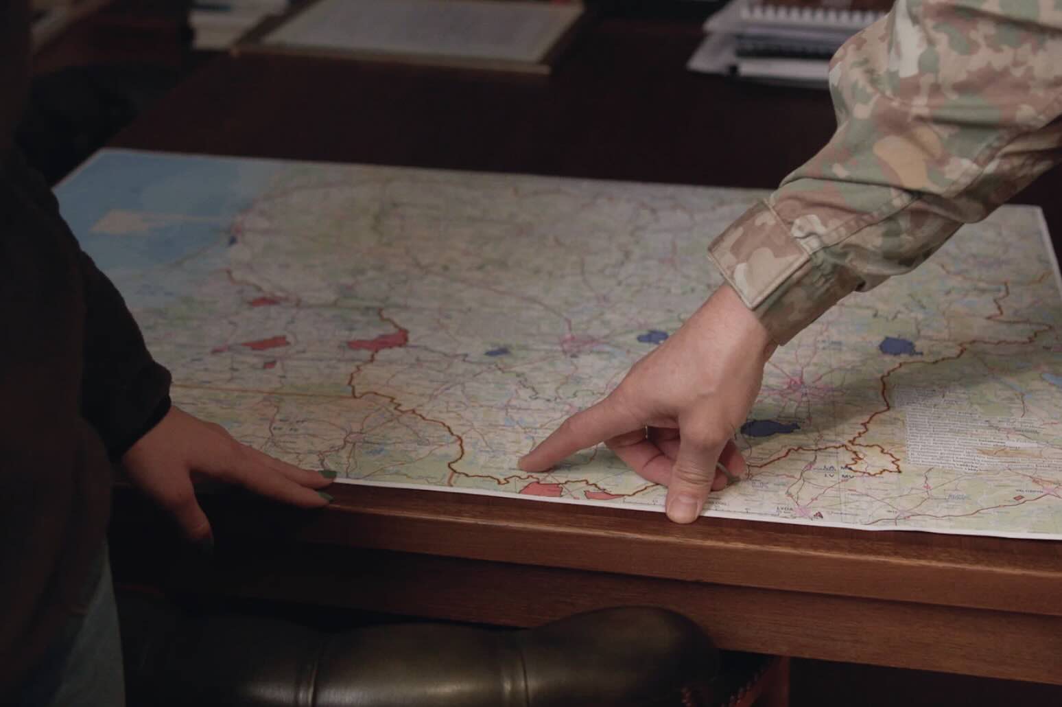 Generolas Raimundas Vaikšnoras priima Gynybos ministerijoje Vilniuje. Ant vieno stalo išskleistas Lietuvos žemėlapis. Jame pažymėtos vokiečių ir amerikiečių karių vietos netoli sienos su Baltarusija. Vaikšnoras rodo į pavienius taškus, aiškina, kur NATO pajėgos yra dislokuotos – ir kur Lietuva planuoja tolesnį dislokavimą. Pokalbiui Generalinio štabo vadas skiria valandą laiko. Vaikšnoras nuo 2024 m. yra Lietuvos kariuomenės vyriausiasis vadas, taigi aukščiausio rango karys.