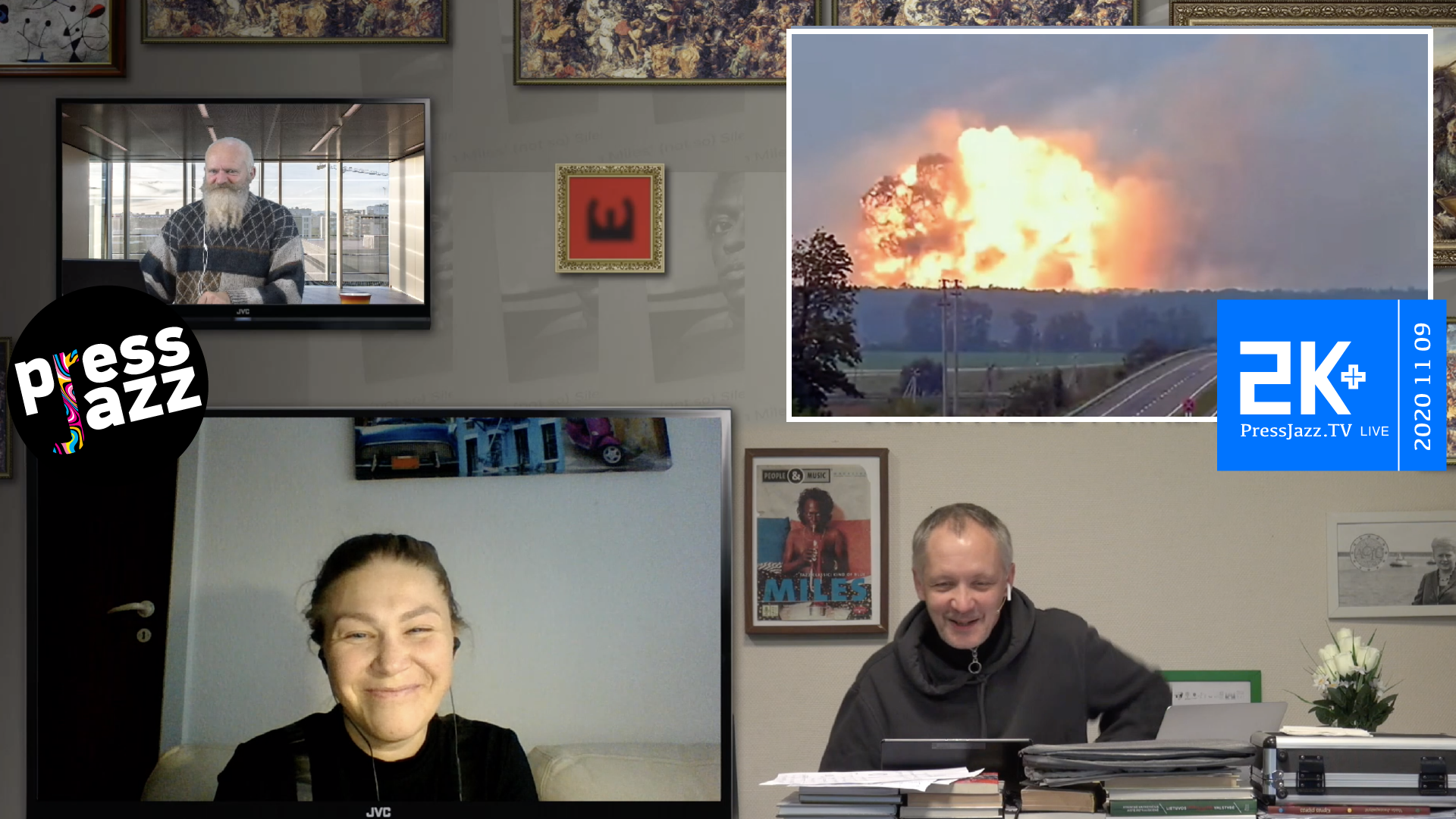 Lapkričio 9 d. pramoginės informacinės muzikinės propagandinės agitacinės šviečiamosios „PressJazz TV“ laidos „2K+“ fragmentai – nemažai naujienų, kurių neturi galimybės viešinti ar tiesiog vengia valstybinė LT žiniasklaida.