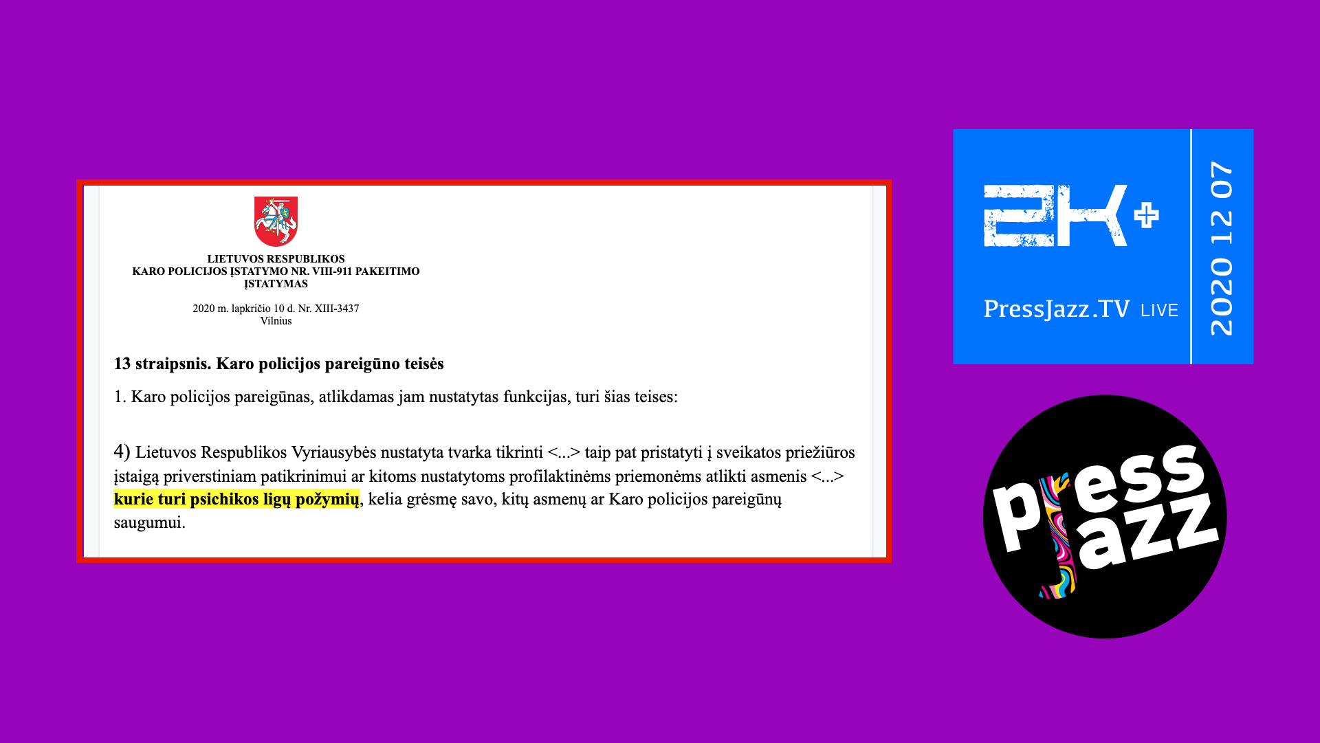 • Karo policijos įstatymas (kurį ypač aktyviai apsimetę kvaileliais gina Žmonių partijos atstovai – anušauskinių KGB sąrašų skelbėjas Arvydas Anušauskas bei jo kolega Laurynas Kasčiūnas): karo policininkai spręs, ar jūs psichiškai sveikas, ar nelabai.
