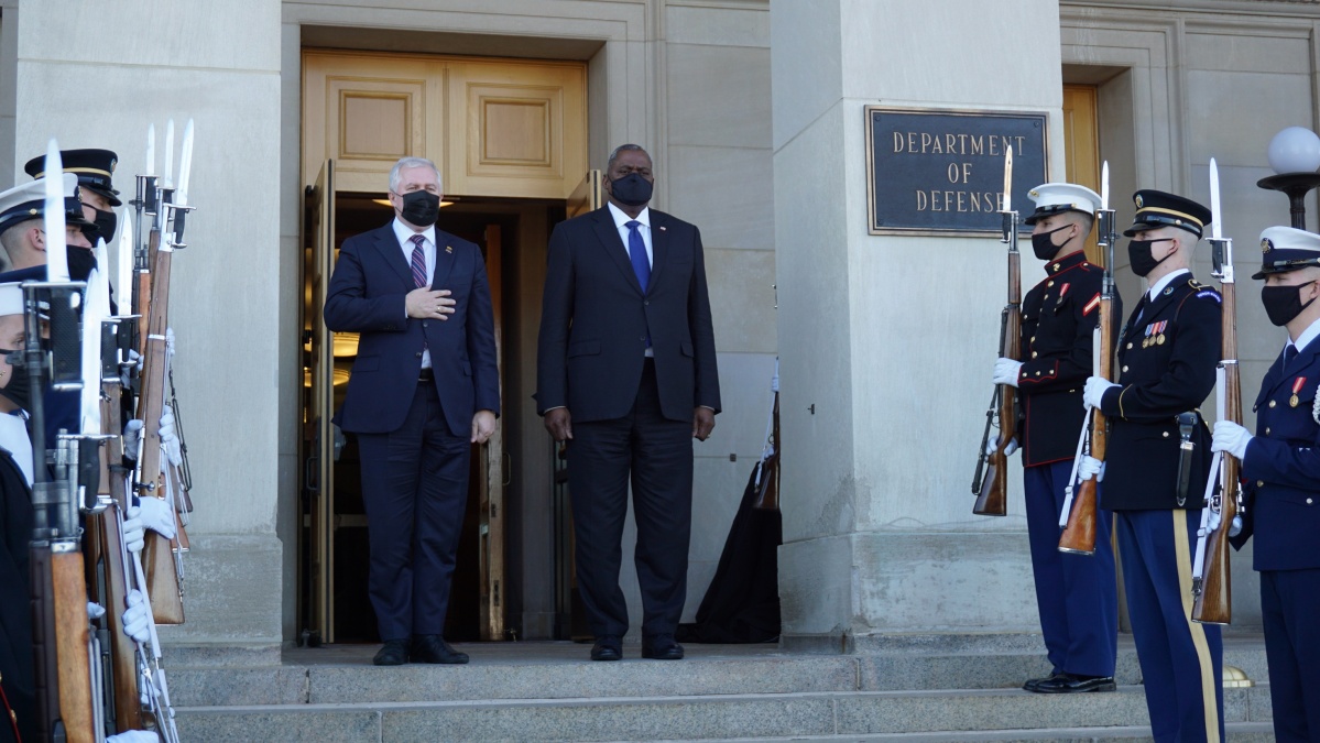 Tuo metu Ll. Austinas pagyrė Lietuvą už principingą lyderystę remiant ir ginant demokratines vertybes bei padėkojo A. Anušauskui už pratybų sąlygas ir visapusę paramą JAV rotacinėms pajėgoms Lietuvoje.