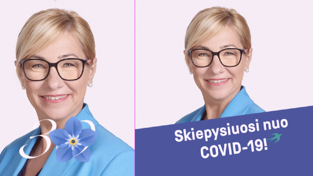 | Visuomeniniuose tinkluose J. Šiugždinienėmėgsta save rodyti pasidabinusia mėlyna gėle. Moteris taip pat turi pomėgį informuoti, kad skiepysis nuo koronaviruso. Nuotr. facebook.com |