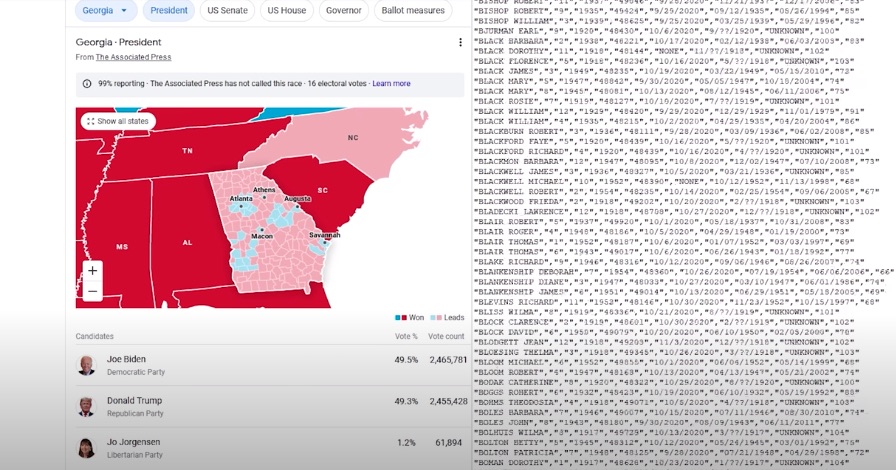 Beveik du dešimtmečius JAV gyvenantis rusas supažindino su numirėlių sąrašu, kurie ką tik vykusiuose prezidento rinkimuose sugebėjo sėkmingai balsuoti. Duomenys pateikiami tik iš vienos valstijos grafystės.