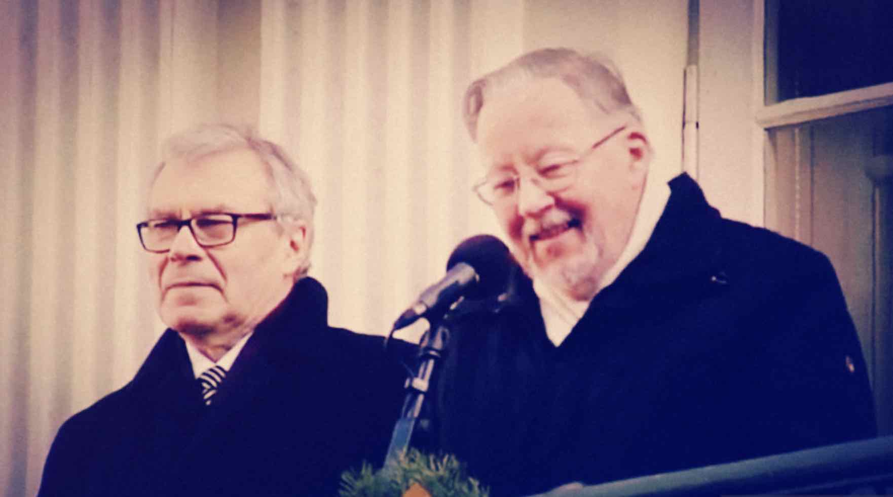 | Istorinių kalbų iš balkono rėžėjas Vytautas Landsbergis (dešinėje). |