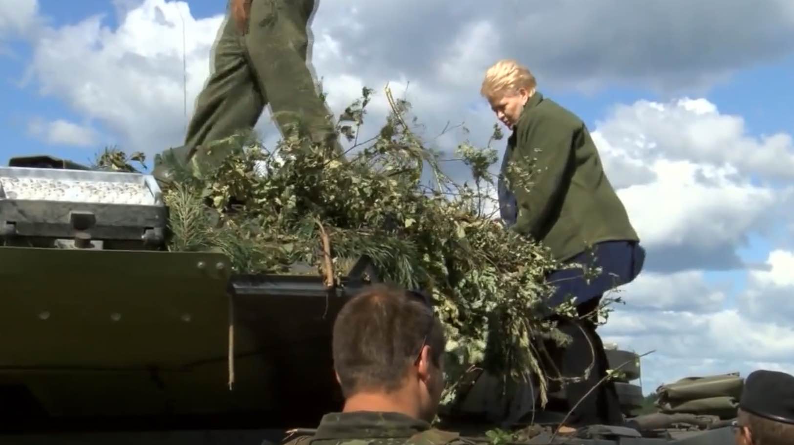 Prezidentė D. Grybauskaitė lipa ant tanko.
