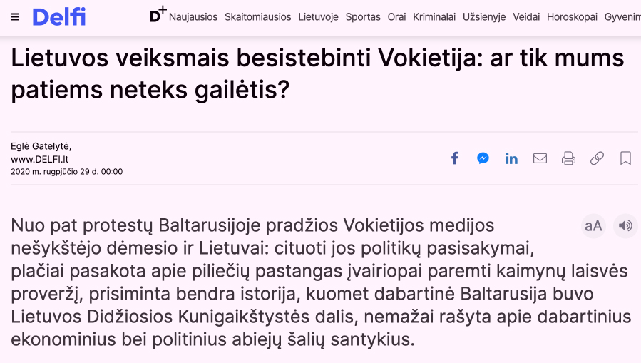 Tačiau dabar dėl Lietuvos valdžios veiksmų Baltarusijos atžvilgiu ir pasekmių Lietuvos žmonėms sunerimo ir nepriklausomas Žmonių partijos portalas, paskelbęs publikaciją „Lietuvos veiksmais besistebinti Vokietija: ar tik mums patiems neteks gailėtis?“.
