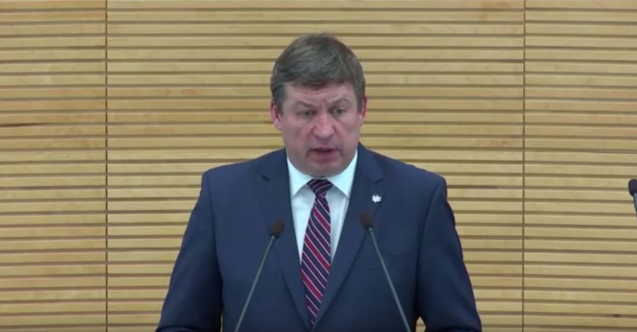 | Krašto apsaugos ministras Raimondas Karoblis įstatymo teikimo metu. |