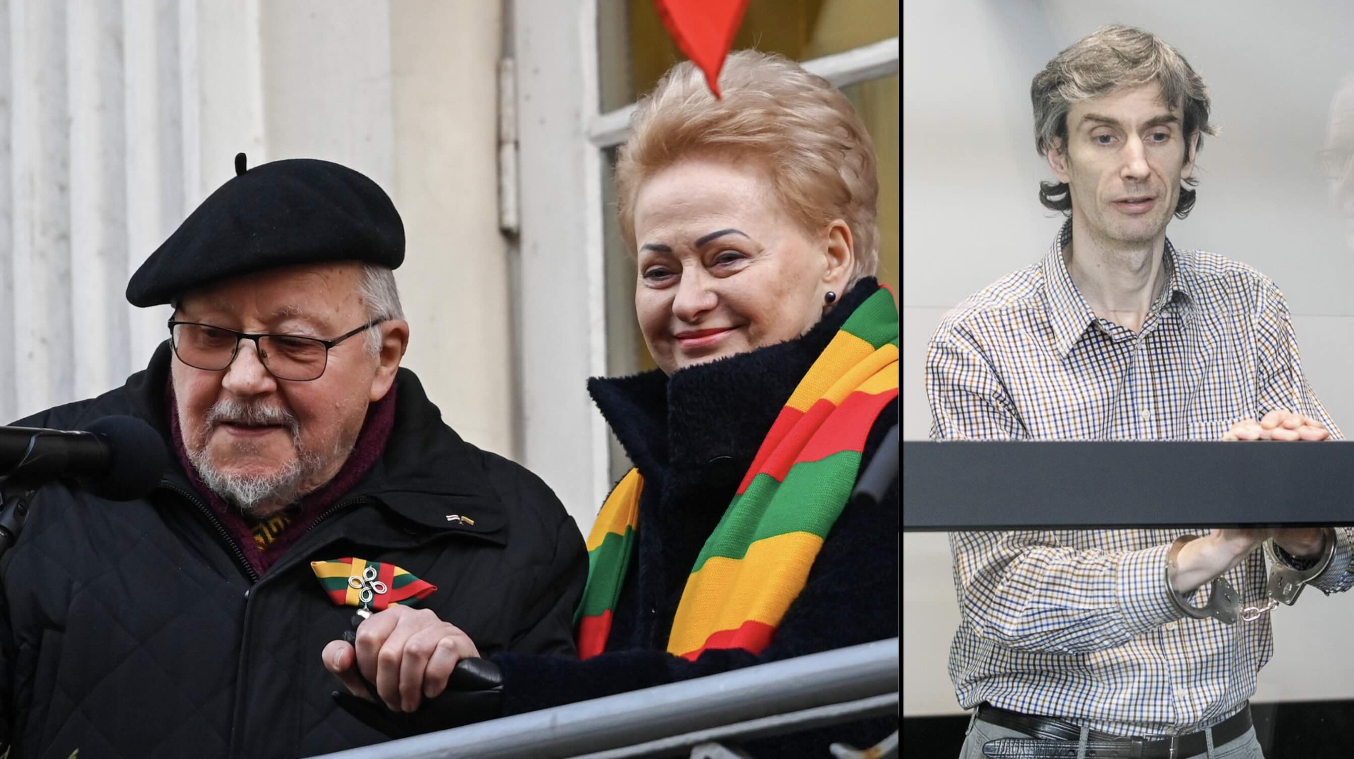 Dešinėje – Algirdas Paleckis. Kairėje – valstybės vadovas Vytautas Landsbergis, turintis pomėgį į Balkoną, švenčiant Vasario 16 d., atsitempti Kovo 11-osios nepriklausomybės priešininkę, Mykolo Burokevičiaus bendražygę, po Nepriklausomybės Akto paskelbimo drauge su šiuo komunistu plušėjusi Lietuvos nepriklausomybės priešininkų pusėje, oficialią Rusijos Federacijos valstybės paslaptį, savo biografijos klastotoją, aktyvią sukilusių Lietuvos kultūrininkų prietelką, Landsbergių bendruomenės Dievaitę, prezidentę Dalią Grybauskaitę.