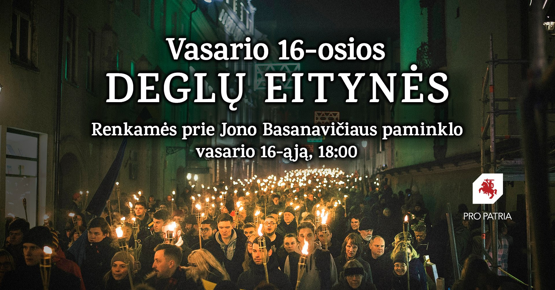 Todėl kviečiame visus nepriklausomą Lietuvos valstybę mylinčius ir jos sukūrimu besididžiuojančius žmones aktyviai dalyvauti 18 val. prie J. Basanavičiaus paminklo prasidėsiančiose Liepsnų eitynėse arba 19:30 val. atvykti į Lukiškių aikštę, kurioje įvyks eiseną politiškai įprasminsiantis šventinis Vasario 16-osios minėjimas.