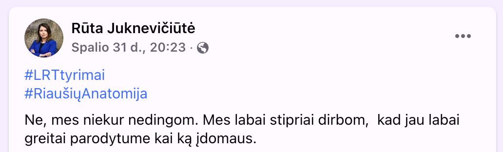 Žurnalistė Rūta Juknevičiūtė visuomeniniuose tinkluose informuoja, kad labai sunkiai dirba ir jau greitai skelbs labai įdomią informaciją.