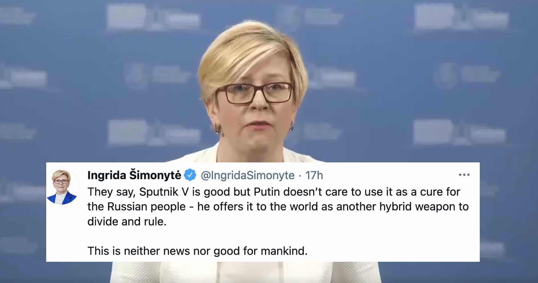 Premjerė Ingrida Šimonytė vasario 5 d. pranešė, kad Lietuva neketina įsigyti rusiškos „Sputnik V“ vakcinos nuo COVID-19.